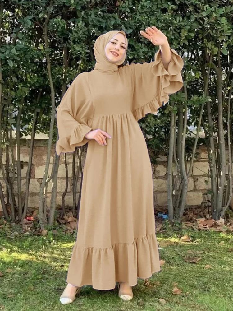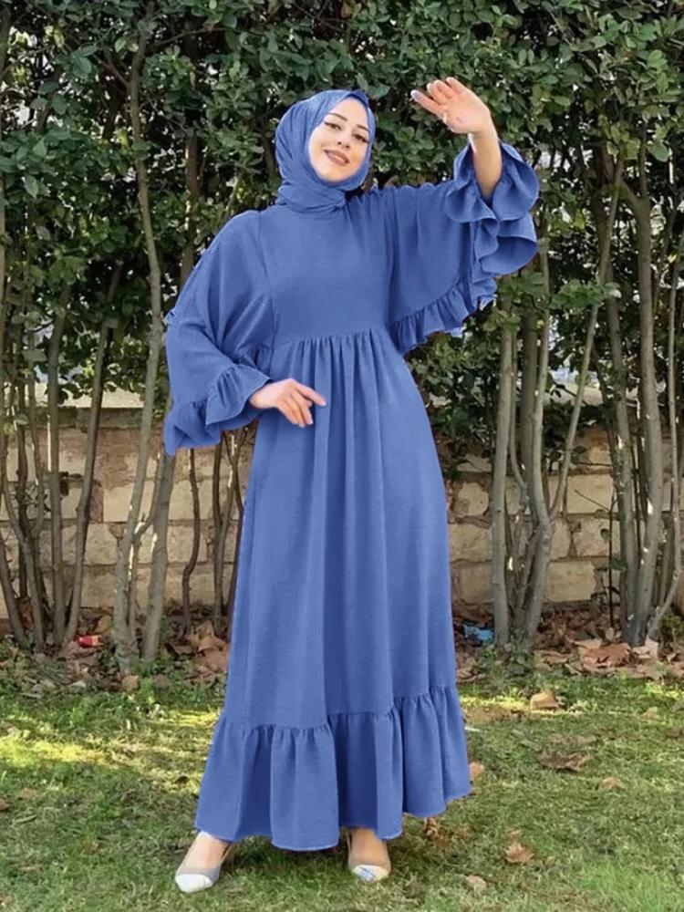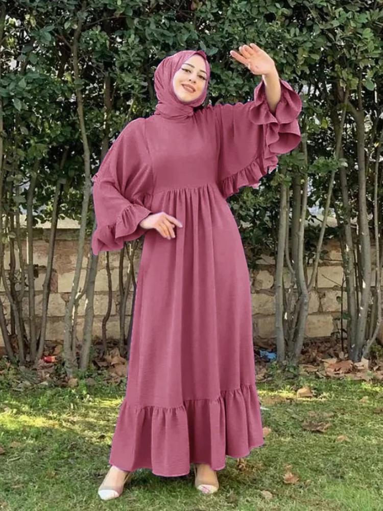 - اسم المنتج: فستان طويل ناعم إسلامي بحزام للنساء