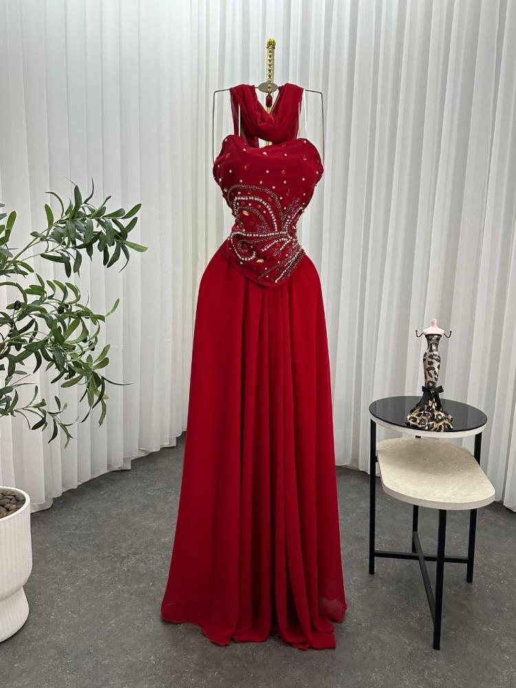 فستان باربي مطرز مع شيفون جورجيت دبل كلوش